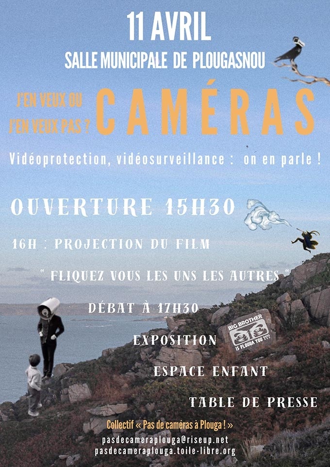Nous avons le plaisir de vous inviter au forum : « Des caméras, j’en veux ou j’en veux pas ? » organisé suite à la décision par la mairie d’installer quinze caméras de vidéosurveillance dans Plougasnou.