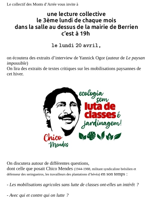 Tout les 3ème lundi du mois un·e personnes partage un texte ou une sélection de texte sur lequel on échange pendant ~1h, autour de quelques trucs à grignoter !